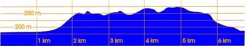 Im Bild oben sehen Sie das Höhenprofil der Strecke. Wir haben den Weg mit GPS abgelaufen und aufgezeichnet. Falls Sie Google Earth benutzen, können Sie die Strecke auch dort anschauen. Die .kml Datei finden Sie hier.(rechte Maustaste auf Link -> Ziel speichern unter -> Datei mit Google Earth öffnen)